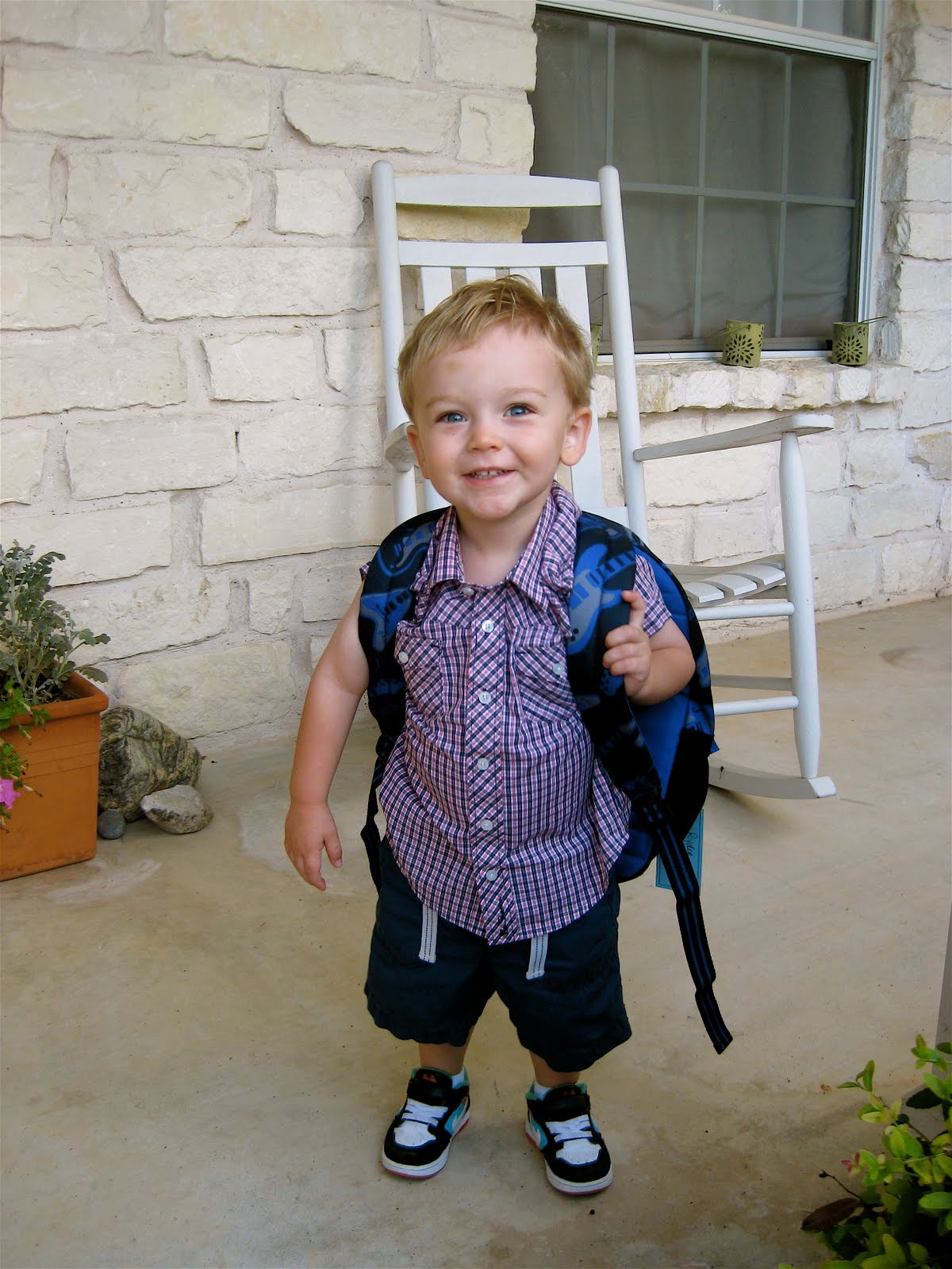 Ryder started "school" yesterday! I use that term lightly. It's more of a mother's day out type program. He will go 2 mornings a week. This really was a quick decision and the place we chose just happened to have one spot left! It's a very small program and he'll get lots of attention. His special classes will be music, sign language, bible & yoga! We think it will give him the structured learning he's wanting these days, get some energy out and give me some special time with my sweet girl. This is all new, so I guess we'll see how it goes. He was very excited leading up to going and SO very excited about his backpack! And his lunchbox...